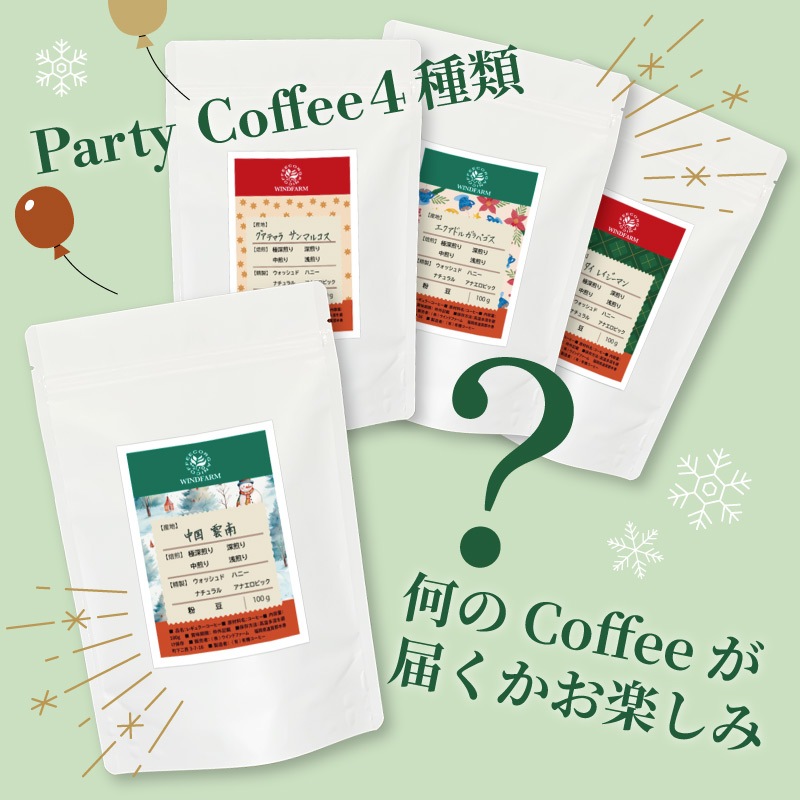 - レギュラーコーヒー 100g × 4袋(産地別4種)