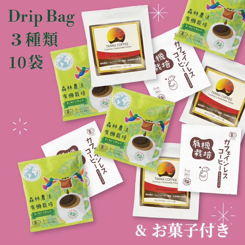 (まいるどぶれんど、カフェインレス、タンナコーヒーの3種類の組み合わせで、合計10袋)